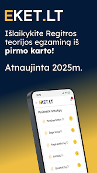 EKET Bilietai 2025 KET Testai, KET sınavına hazırlık için tasarlanmış bir eğitim uygulamasıdır. Kullanıcı dostu arayüzü ile kişisel bir öğretmen gibi çalışan bu uygulama, sınavı başarıyla geçmenize yardımcı olmayı hedefler. Uygulama, kullanıcıların başlangıç seviyesinden ileri seviyeye kadar çeşitli konularda testler çözmesine olanak tanır ve bu testler, gerçek sınav metodolojisine uygun olarak hazırlanmıştır.
